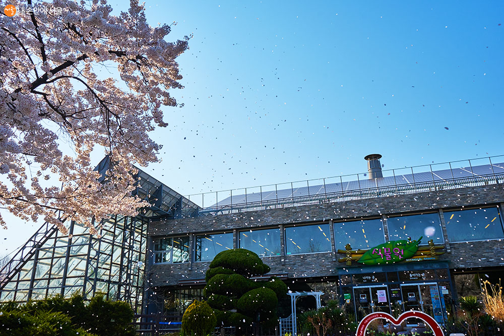 식물원의 모습. 센 바람에 벚꽃잎이 분분히 흩날렸다 ⓒ이정규