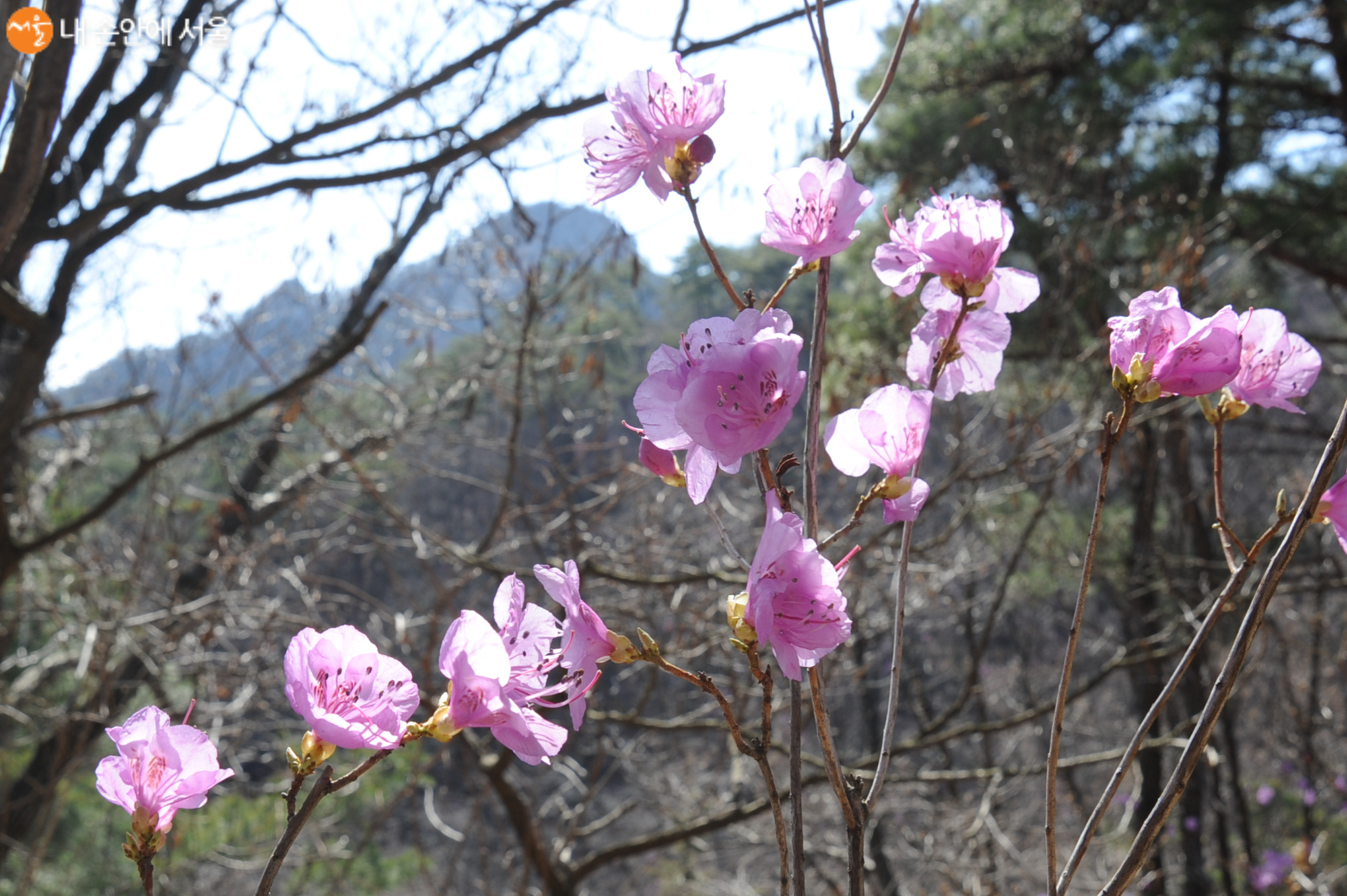 산길에 핀 진달래가 봄을 알린다 ⓒ조수봉