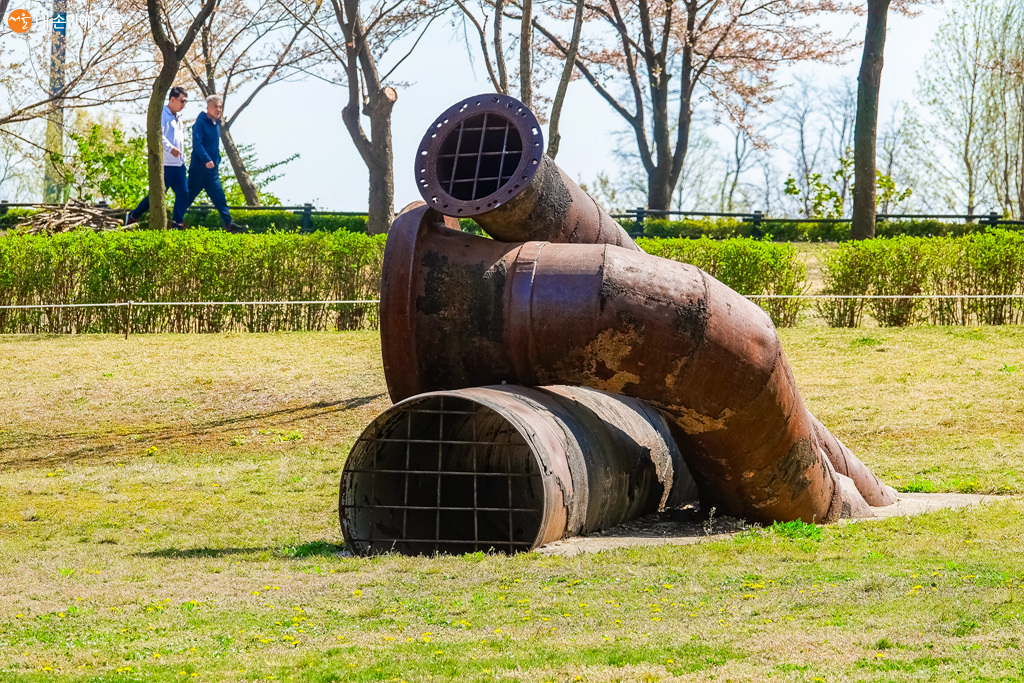 옛 정수시설물을 그대로 재활용한 모습이 이색적으로 보이는 몬드리안 정원 ©박우영