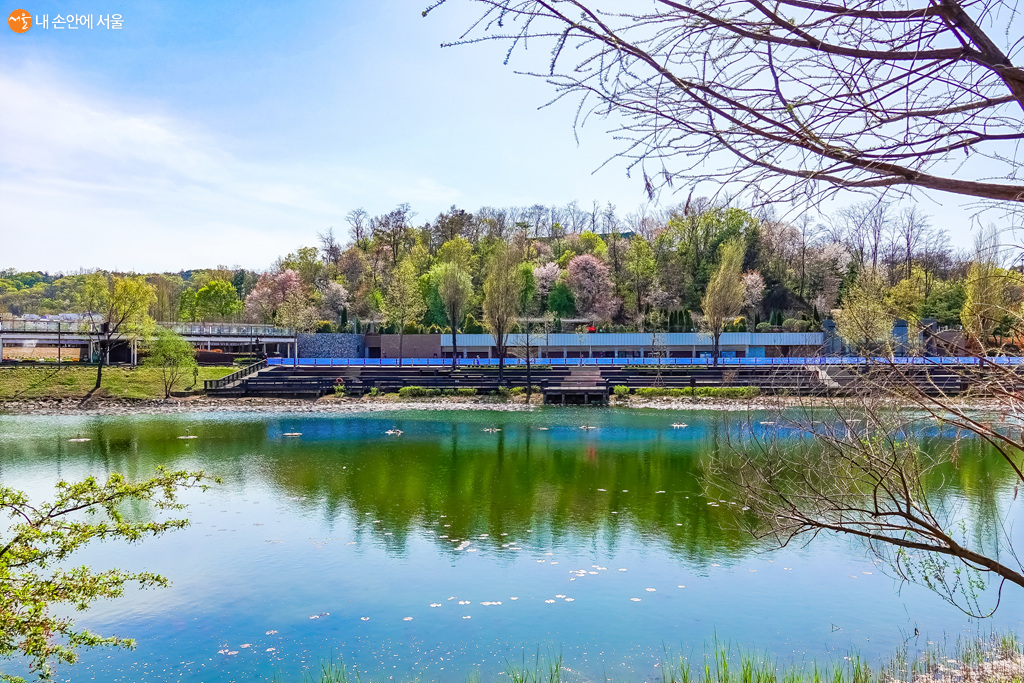 중앙 호수에 비친 봄 풍경이 한폭의 그림 같다 ©박우영