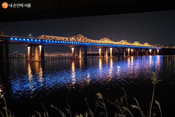 서울시 블루라이트 캠페인에 참여 중인 동호대교 ⓒ권순영