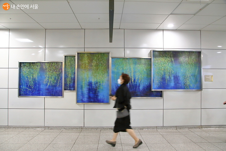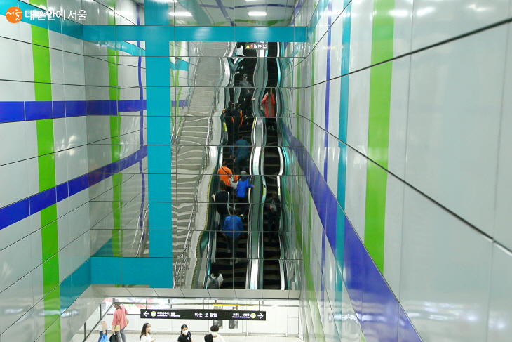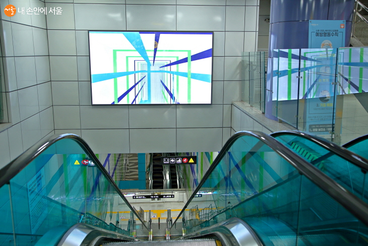 성신여대역 환승엘리베이터 구간에서는 강은혜 작가의 ‘커넥션’도 만날 수 있다. ⓒ이선미
