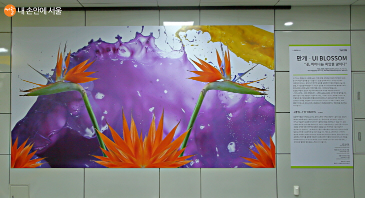 우이신설선 11개 역사에서 '만개:UI Blossom' (부제: ‘꽃, 피어나는 희망을 말하다’) 전이 열리고 있다. ⓒ우이신설 문화예술철도