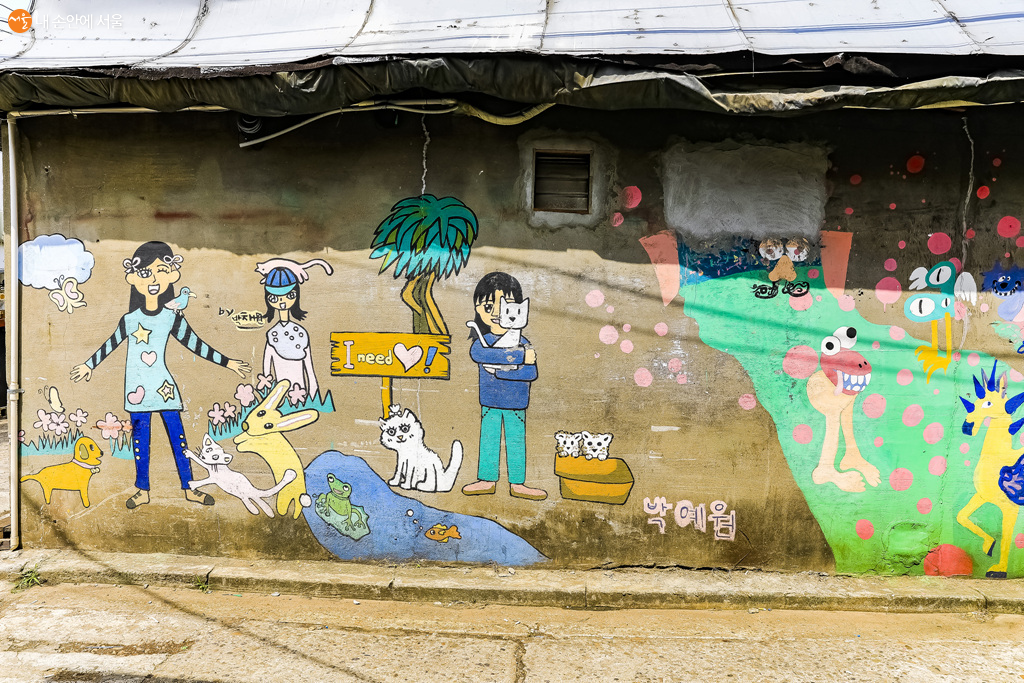 아이들과 동물들을 모티브로 그린 박예원 작가의 벽화 ©박우영