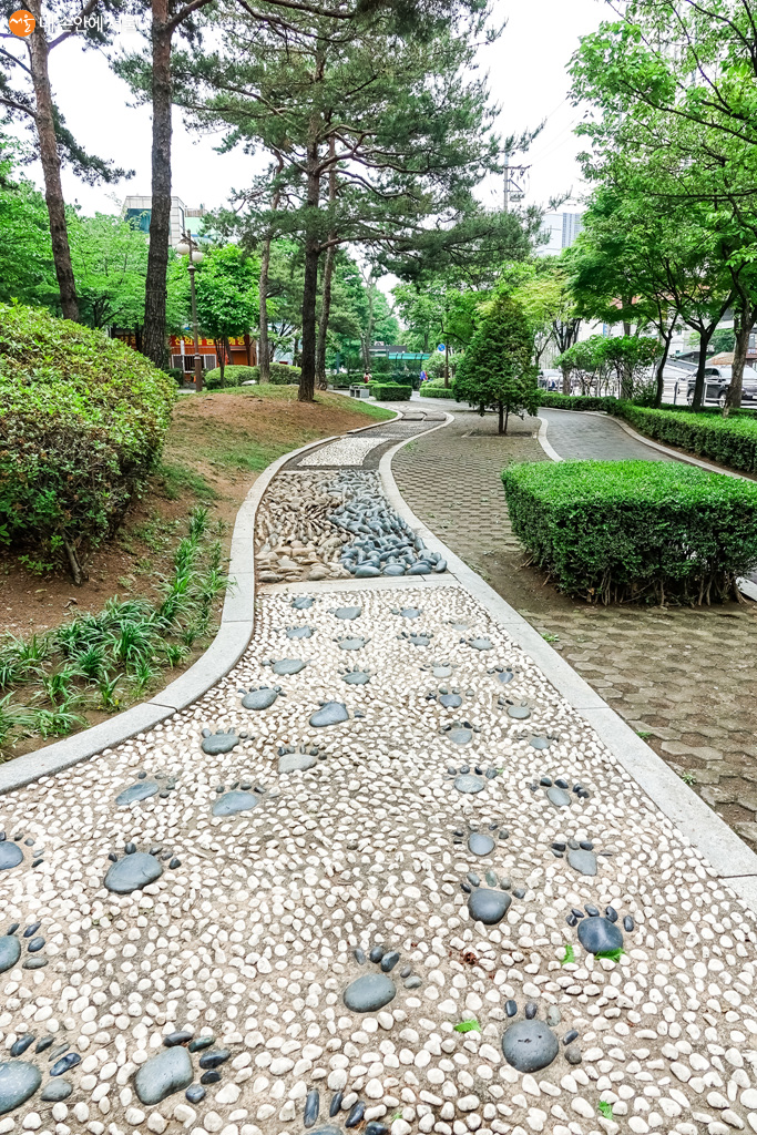 산책로 옆에는 돌과 나무로 이루어진 지압로가 이어져 있다 ©박우영