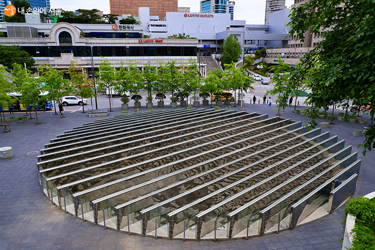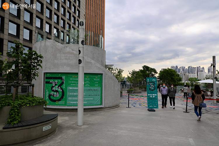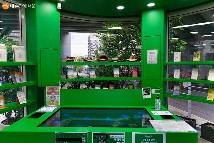 남대문시장 방향에 있는 '서울로 안내소'에는 서울로7017의 역사와 의미를 전시하고 무료 가이드북과 지도 등이 구비되어 있다 ⓒ양인억
