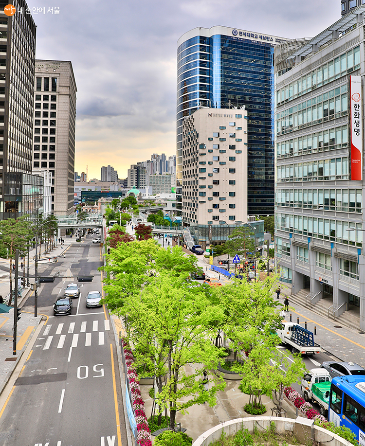 남산육교 위에서 바라본 서울로7017은 초록 물결로 가득하다 ⓒ양인억