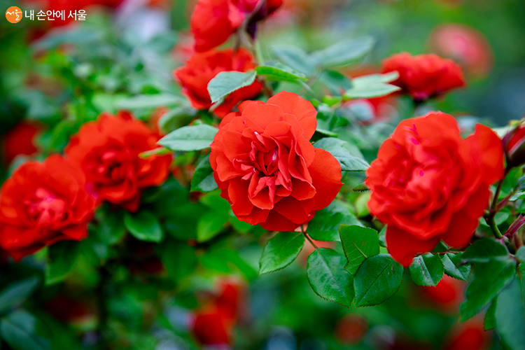 장미무대 앞에는 다양한 종류의 크기와 색깔로 서로의 아름다움을 뽐내는 장미들이 진한 향기를 풍기고 있다 ⓒ양인억