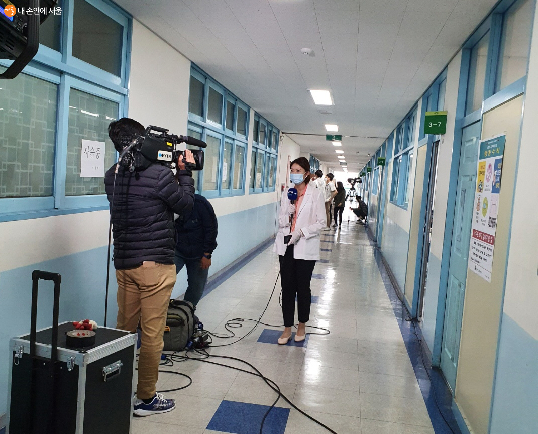 언론사들이 고3 등교 현장을 취재하고 있다. ⓒ최병용