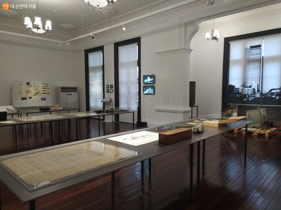 2층에는 1950년~2000년대 건축사사무소에서 사용한 용품과 결과물들이 전시 중이다. ©조경석