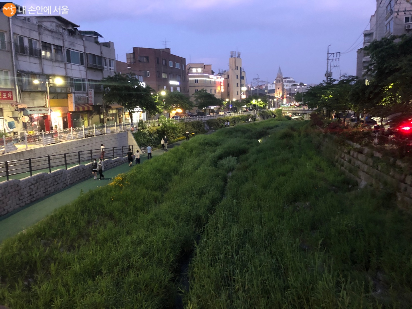 해가 저물어 갈 때쯤의 성북천에는 많은 시민들이 산책을 즐기고 있다 ©송수아