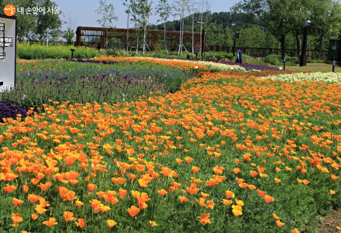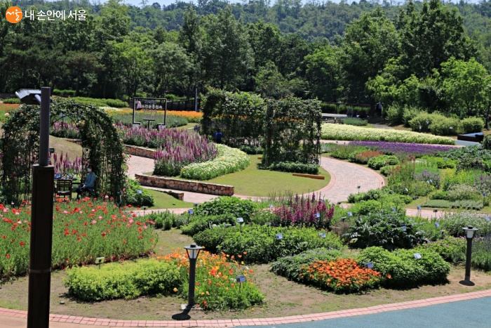 허브꽃으로 만발한 공원을 산책하는 사람들 ⓒ한춘석