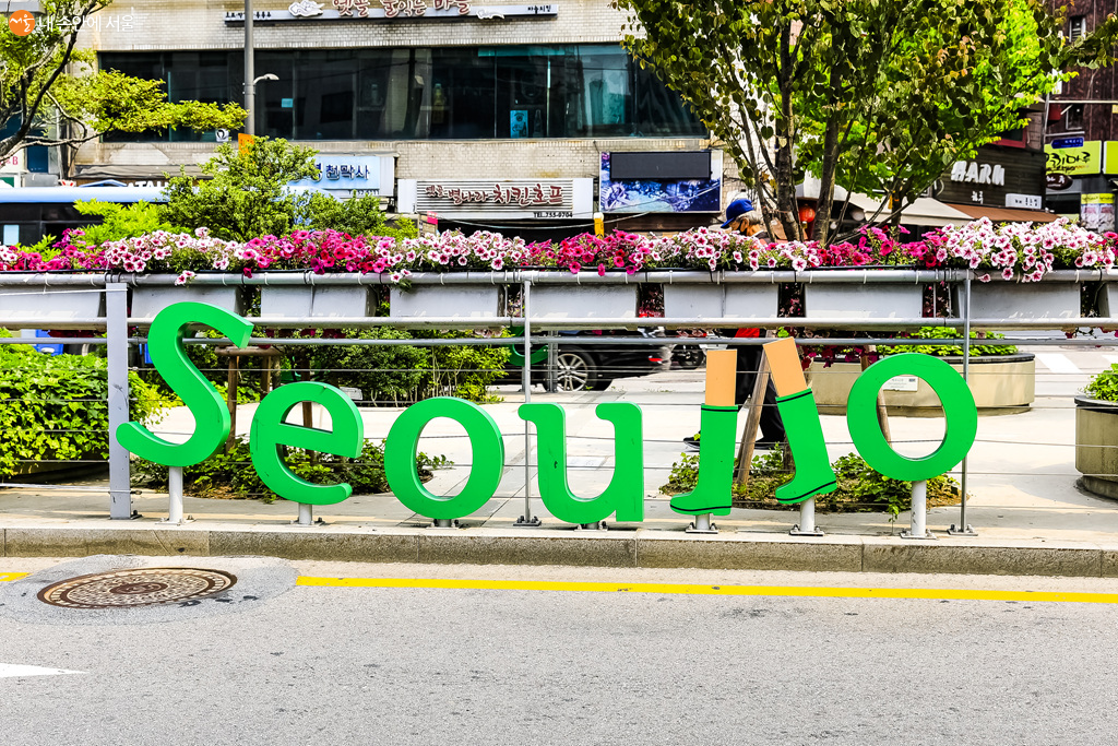 사람의 발 모양을 형상화 한 '서울로7017'의 시그니처 로고가 곳곳에서 눈에 띈다 ©박우영