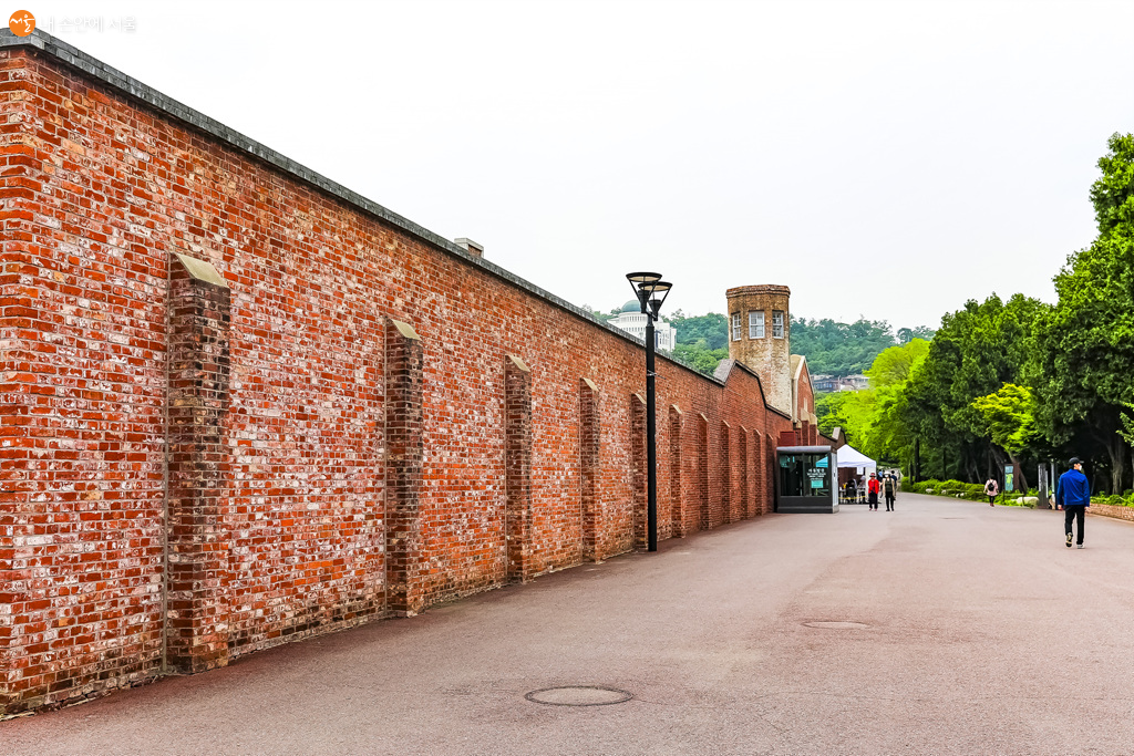 수감자들이 대화를 하지 못하도록 벽돌이 쳐진 사이로 운동을 시켰던 격벽장 입구 ©박우영