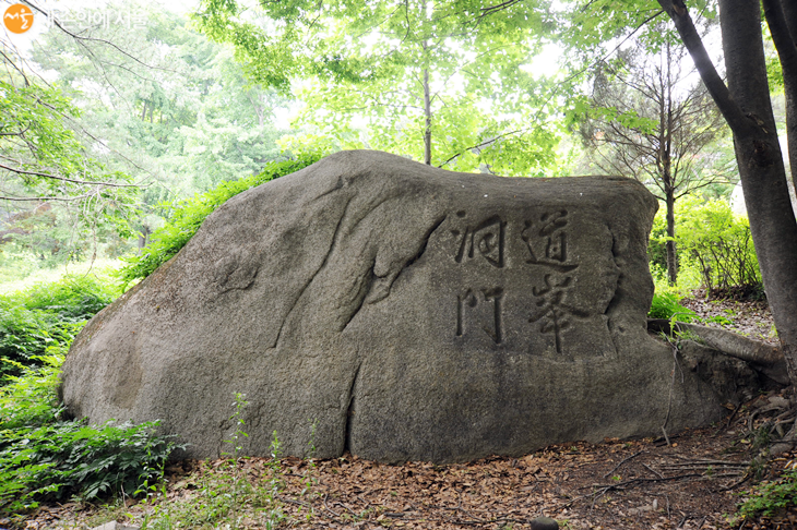 도봉동문(道峯洞門)이라고 쓰여 있는 우암 송시열 글씨. 도봉탐방지원센터 뒤 위치 ⓒ조수봉