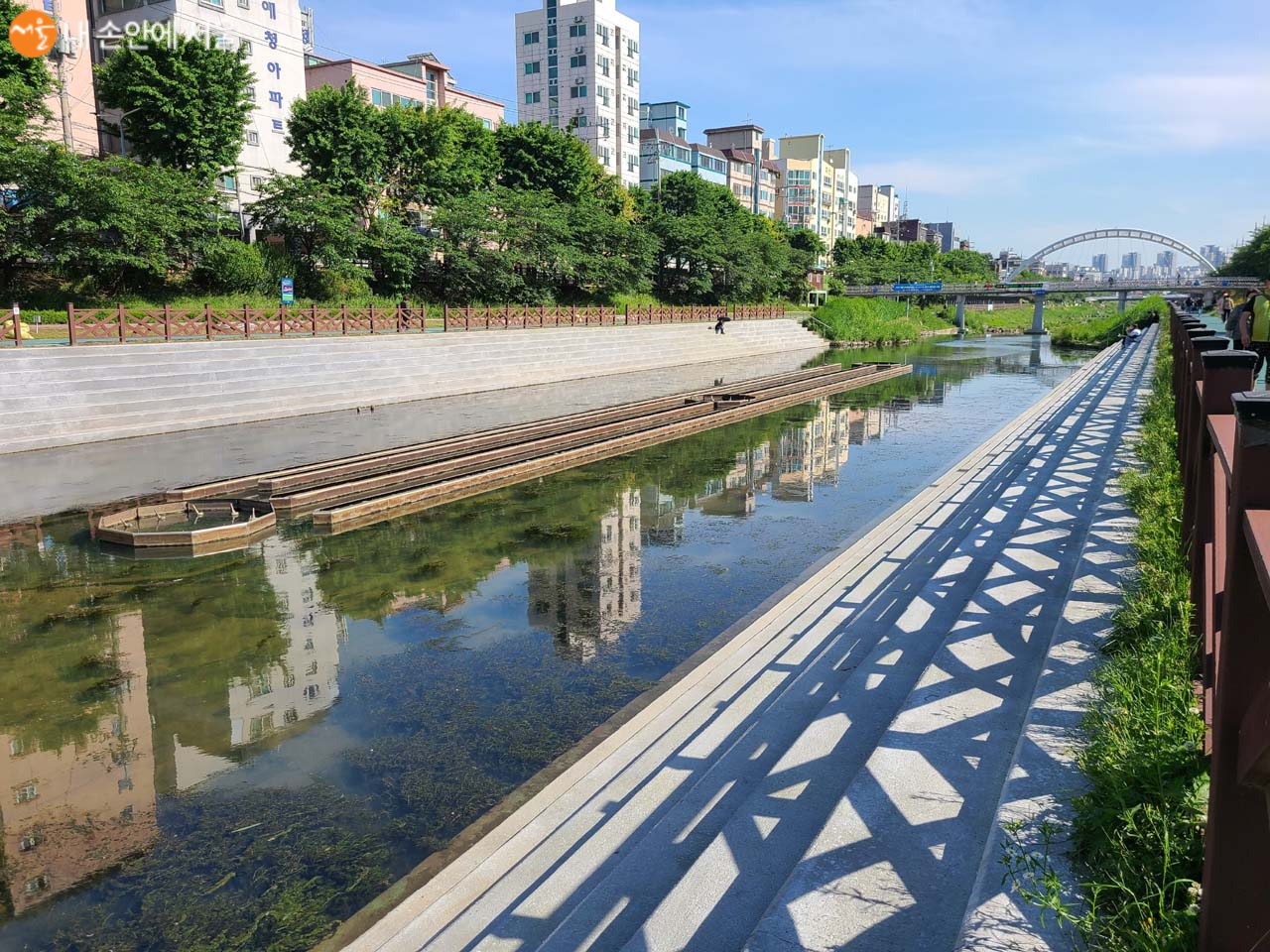 불광천에 반영 된 건물들이 예쁘다 ©이지수