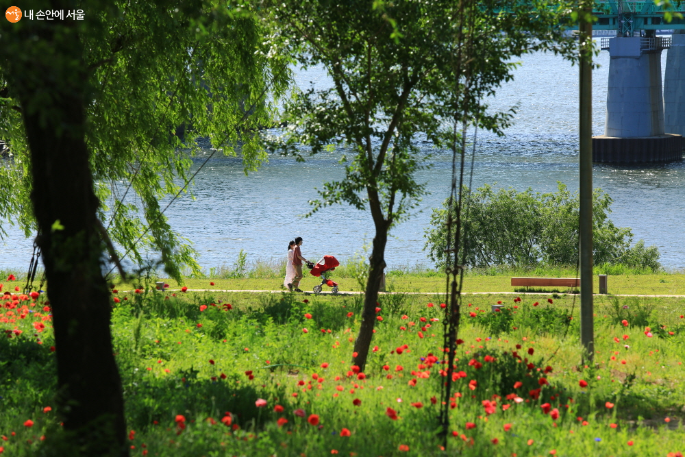 예쁜 노들섬에서 여유롭게 산책을 즐기고 있는 가족 ⓒ이재몽