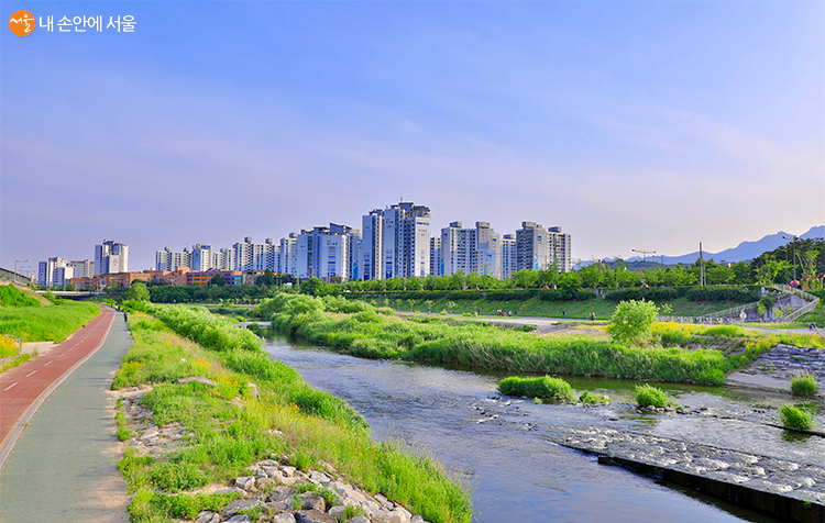 중랑천 상류(서울시 권역 기준)의 일부 구간은 하천 폭이 좁아 한강으로 유입되는 하류 쪽과는 전혀 다른 모습이다 ⓒ양인억