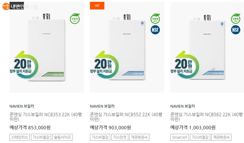 가정용 친환경 콘덴싱 보일러로 교체하면 서울시에서 보조금을 지원받을 수 있다