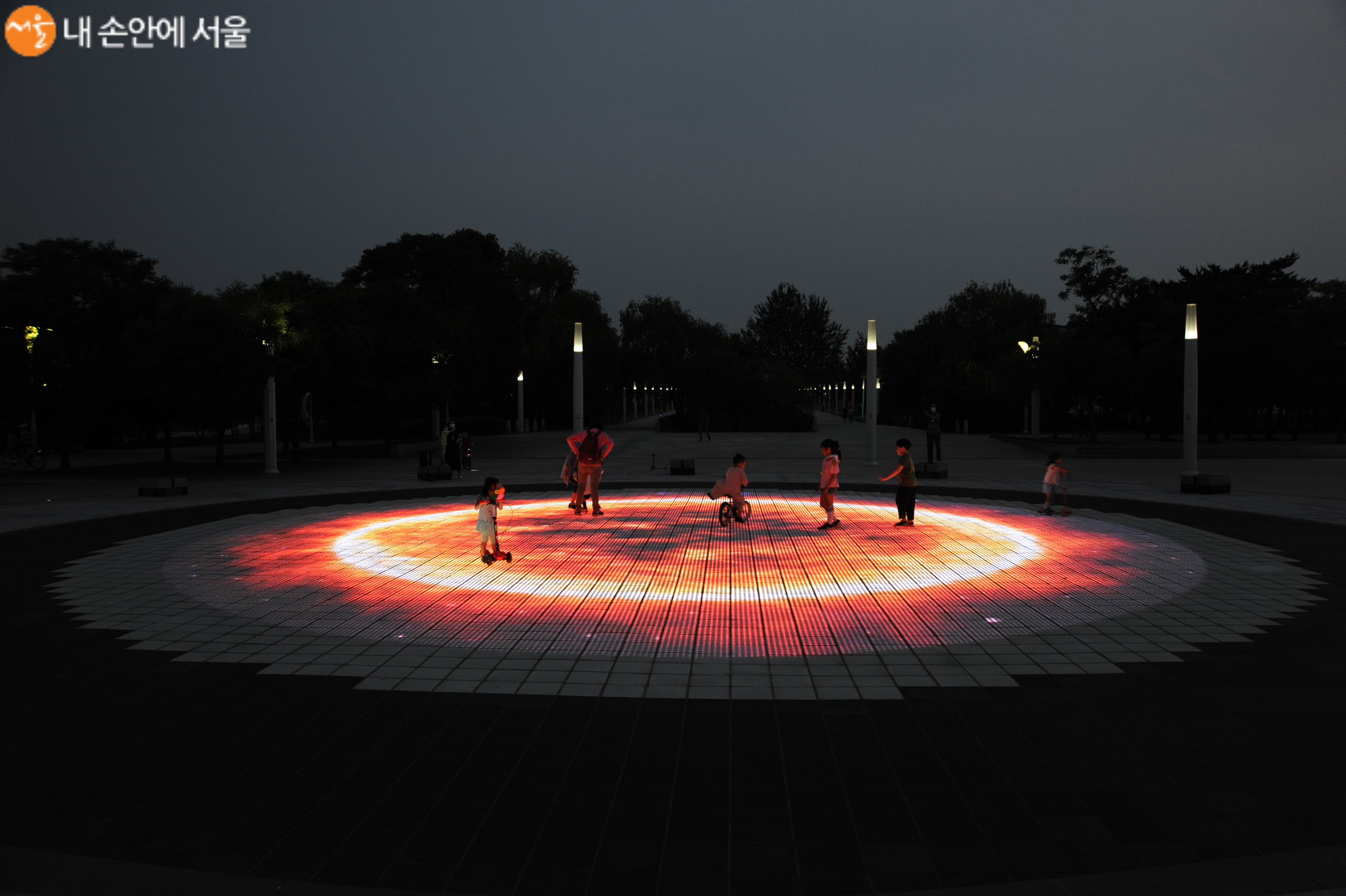 월드컵공원의 별자리광장에서는 일몰 후부터 ‘솔라스퀘어’를 표출한다. ‘솔라스퀘어’는 보도블록을 사용하며 전력을 생산하고 그 전력으로 LED 영상 연출 및 조명으로 사용할 수 있는 친환경 신생에너지 시스템이다. 더운 여름날 월드컵공원의 나무숲에서 휴식을 취하고 해가 지는 시간에 ‘솔라스퀘어’까지 감상한다면 일석이조가 아닐까!