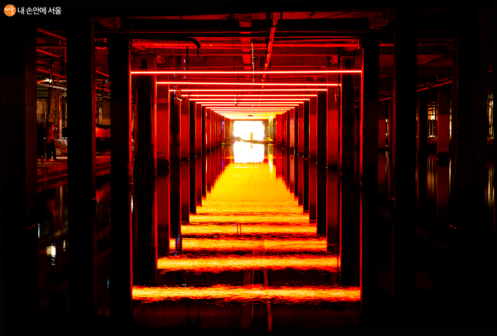 깊은 어둠의 공간을 따뜻한 빛을 통해 새로운 공간으로 바꾸는 라이트 아트 작품 '숨길' ⓒ권영학