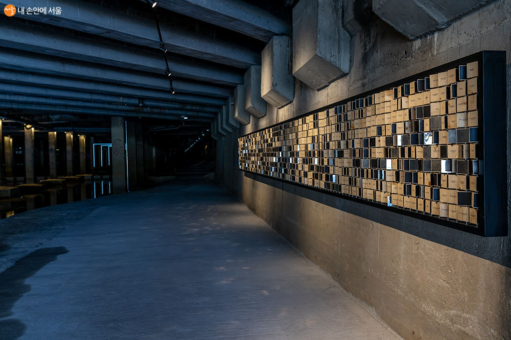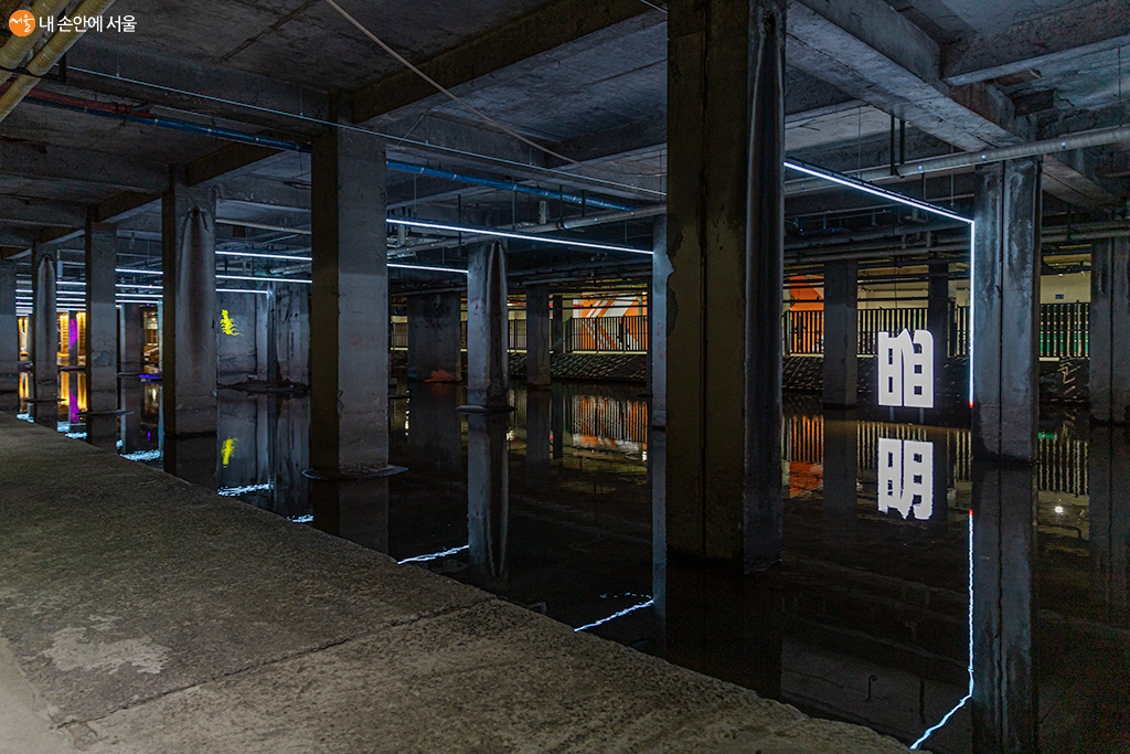 홍제천의 긴 역사 이야기를 빛 그림자로 표현한 설치미술 작품 '흐르는 빛_빛의 서사' ⓒ유서경
