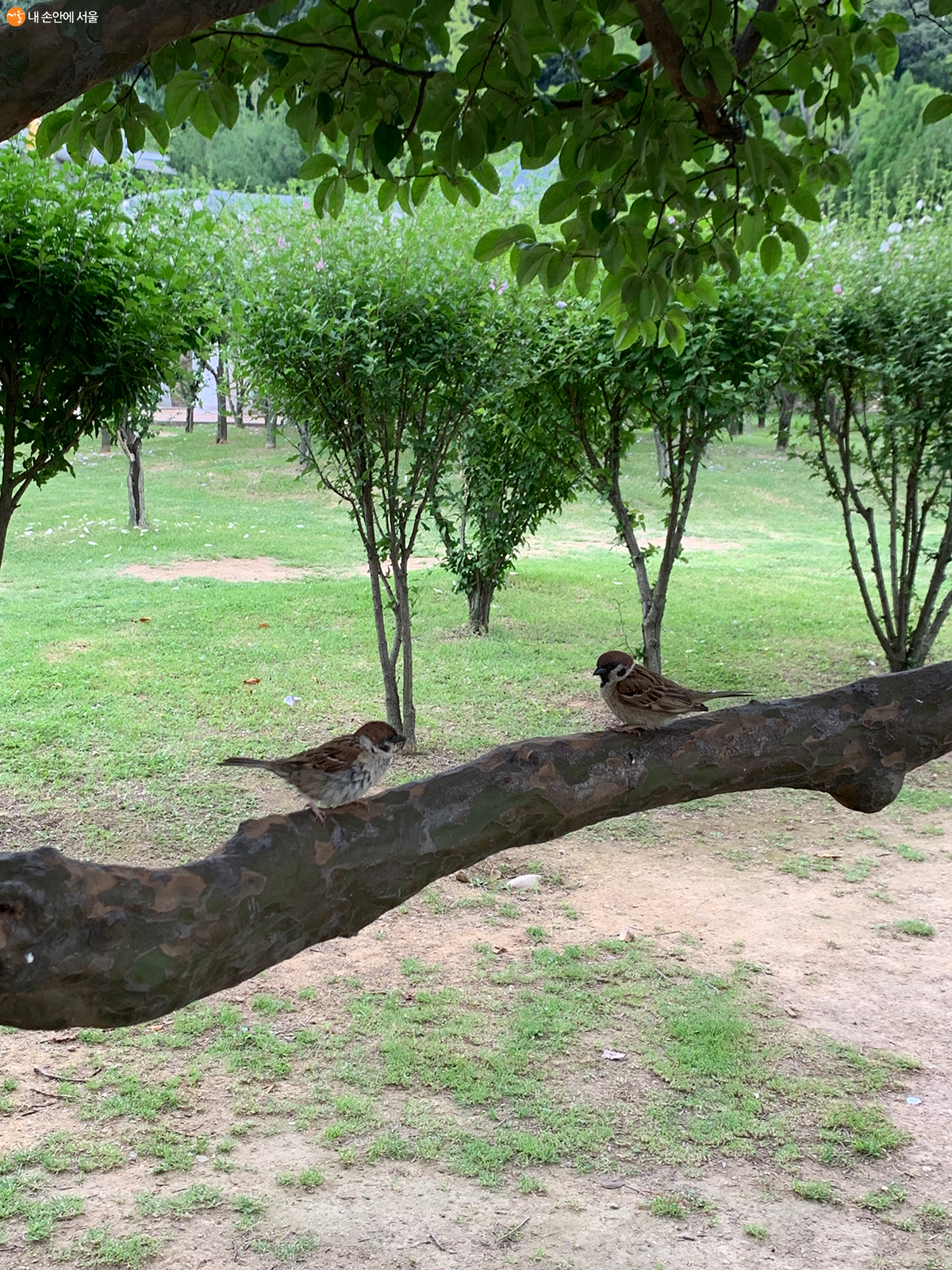 무궁화동산 옆 모과나무에 앉아 있는 참새들 © 박혜진