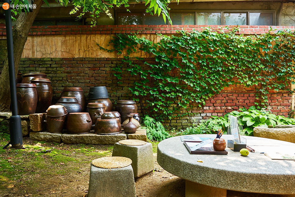뒤뜰에는 운치 있는 작은 장독대와 방문객을 위한 쉼터도 있다 ⓒ이정규