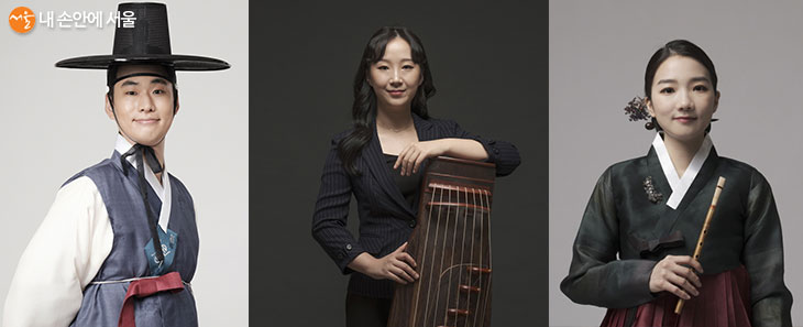 (왼쪽부터) 해금 연주자 이강산, 아쟁 연주자 오하라, 피리 연주자 배주현 ⓒ국립국악원