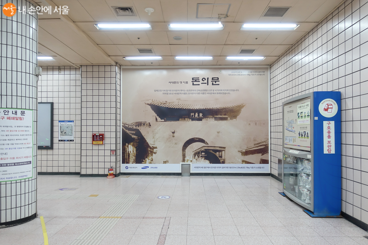 옛 돈의문 사진이 서대문 지하철역 벽면에 꾸며져 있다 Ⓒ김인수