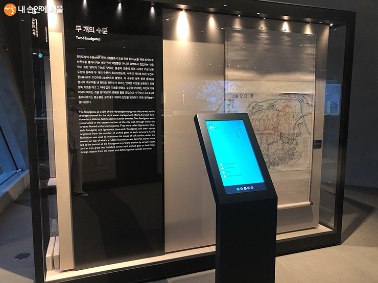 두 번째 파트에서는 서울 도성 안 하천의 흐름을 관리하던 오간수문과 이간수문의 구조와 역할에 대해서 배울 수 있다. 이간수문의 실물과 모형도 있다. 영상도 함께 볼 수 있어서 생동감 있게 수문을 보고 느낄 수 있었다.