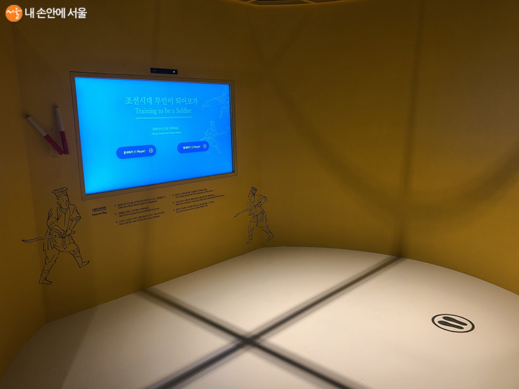 전시실 내에 있는 AR 체험도 흥미롭다. AR 체험존에서는 조선시대 무인이 되어 직접 무술을 따라 해보는 게임을 할 수 있다.