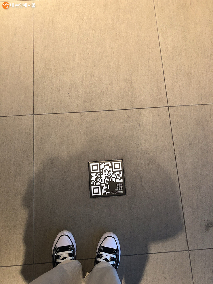 바닥에 있는 QR코드로 증강현실 관람이 가능하다 ©송수아