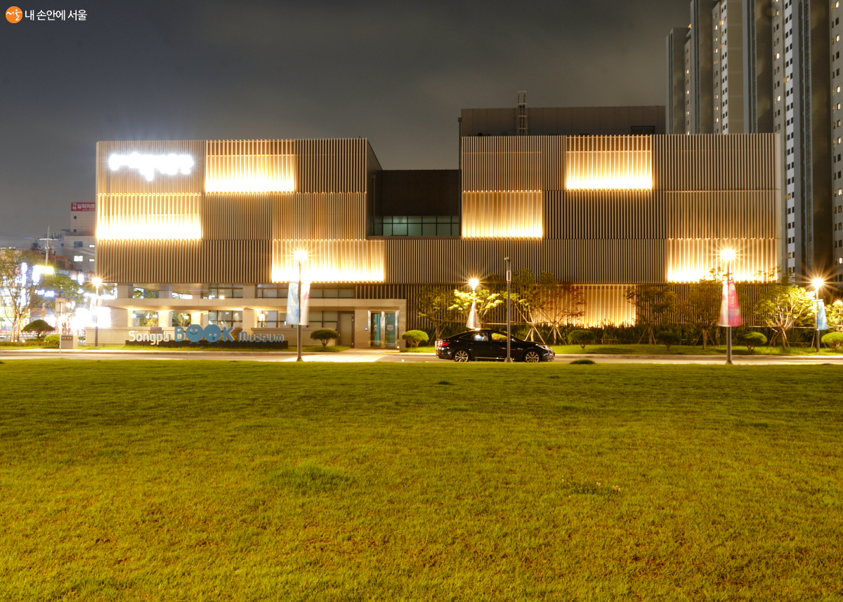 2019년 봄에 오픈한 송파책박물관은 2019년 서울시 좋은빛상 대상을, 2020년에는 서울시 건축상을 수상하였다. 건물의 외관이 아름다울 뿐만 아니라 친환경까지 고려한 부분을 인정받았기 때문이다. 한낮의 더위가 가신 밤, 필자는 송파책박물관을 찾았다. 반짝이는 야경을 카메라 렌즈로 담기 위해서였다. 박물관은 현재, 코로나19로 휴관 중이지만, 사회적 거리두기가 완화되어 다시 개관한다면 제일 먼저 아이들과 함께 박물관을 관람하고 싶다. 건물 앞 잔디밭에서 아이들과 신나게 뛰어노는 상상을 하며 오늘의 아쉬움을 달래본다.