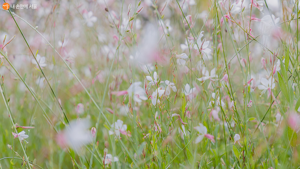 장미원에서 만난 바늘꽃과의 ‘가우라꽃’. 장미는 아니지만 장미원 한 쪽에 무리 지어 바람에 몸을 맡기고 있다. ⓒ양인억