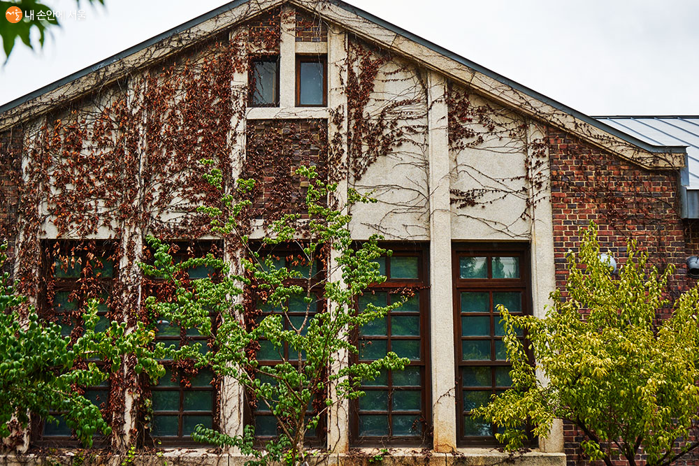 경농관의 후면 모습으로 붉은 벽돌 위의 색 바랜 담쟁이가 운치를 더한다 ⓒ이정규