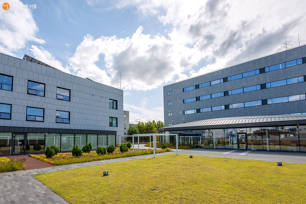 '가'동 옆으로 조성된 야외 휴게 공간이 멋지다 ⓒ문청야