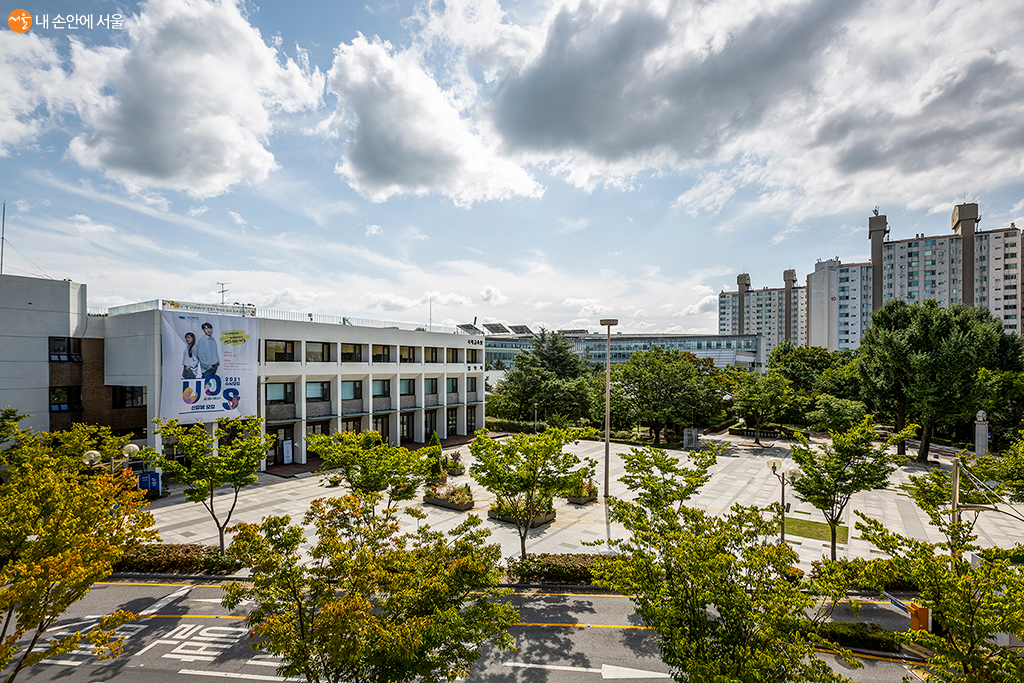 가동 앞에서 바라본 시립대학교의 모습이 공원처럼 보인다 ⓒ문청야