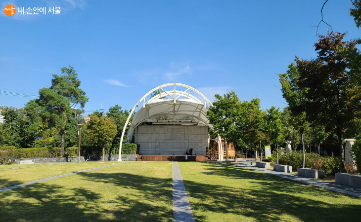 공원 가운데로는 넓은 잔디광장과 야외공연장이 펼쳐진다. 무대의 용벽화는 동대문구 구민들이 직접 찍은 사진들을 포토모자이크 기법을 통해 조성했다. 주중 아침, 저녁으로 생활체육프로그램을 운영하고 다양한 공연으로 볼거리 제공했던 곳이다.
