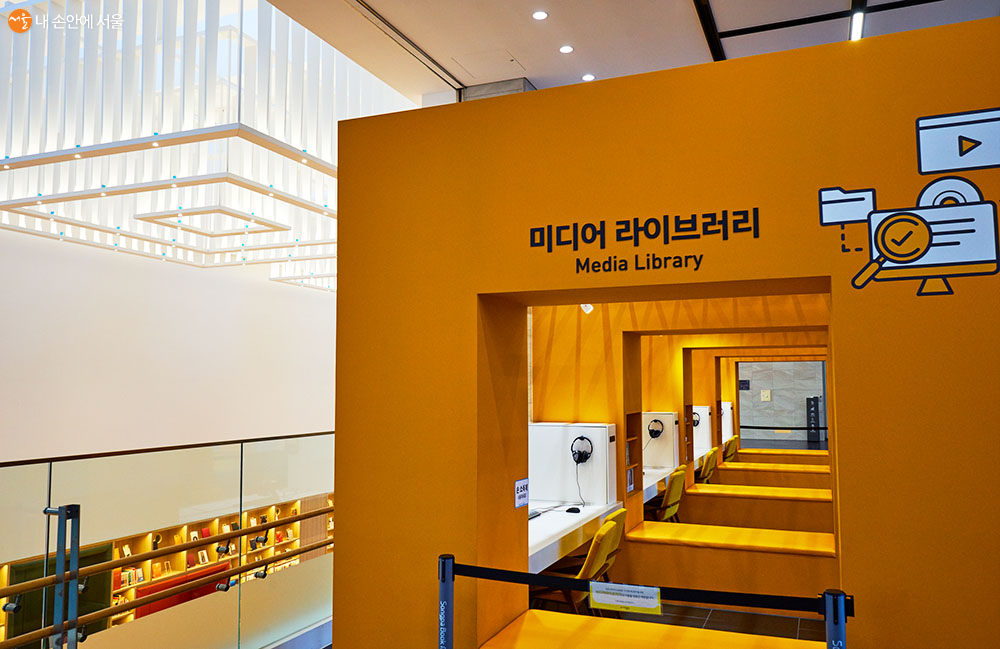 디지털 콘텐츠를 볼 수 있는 미디어 라이브러리와 천장 조명의 디자인도 책 모양을 모티프로 하고 있어 인상적이다 ⓒ이정규