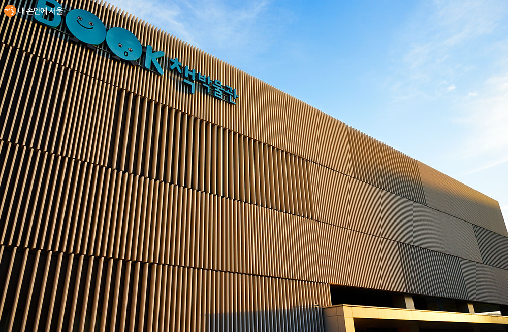 마치 책장에 많은 책들이 꽂혀있는 듯한 느낌을 받는 송파책박물관의 외관 디자인 ⓒ이정규