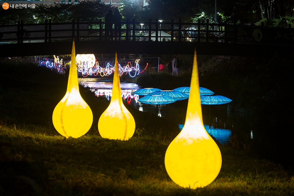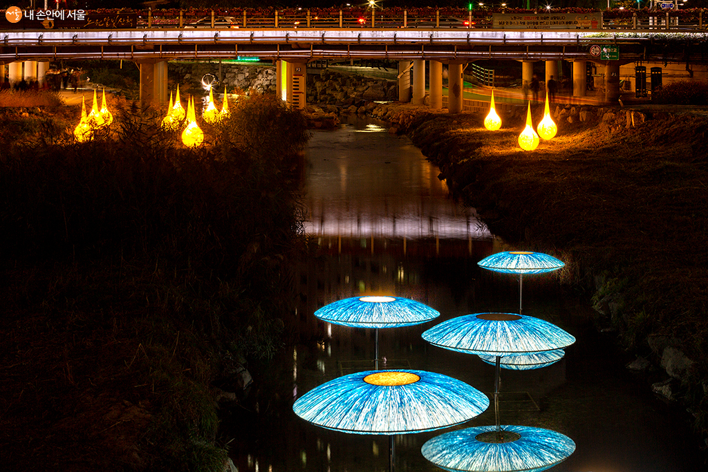 당현천에 노원불빛정원 작품들이 전시되어 있다 ⓒ문청야