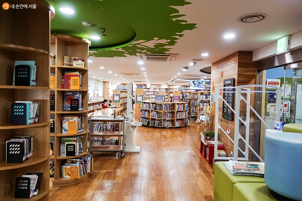 숲속 분위기를 느낄 수 있도록 만든 도서관 내부 ©박우영