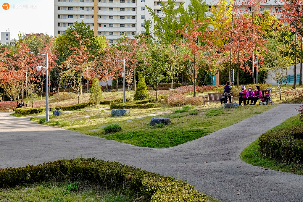 공원에 조성된 벤치에서 쉬고 있는 시민들의 모습 ©박우영
