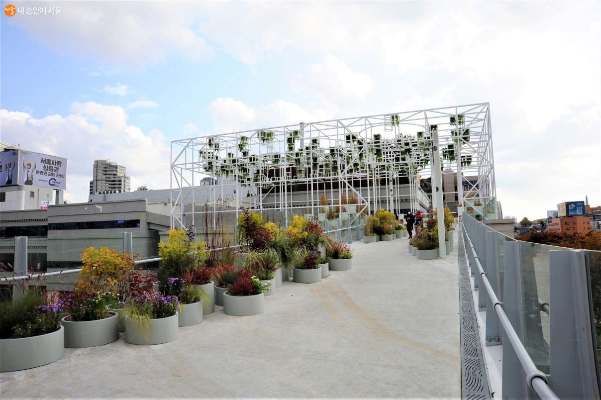 ‘서울역 옥상정원’과 연결되는 공중보행로가 시작되는 서울로7017의 장미마당 ⓒ조수봉