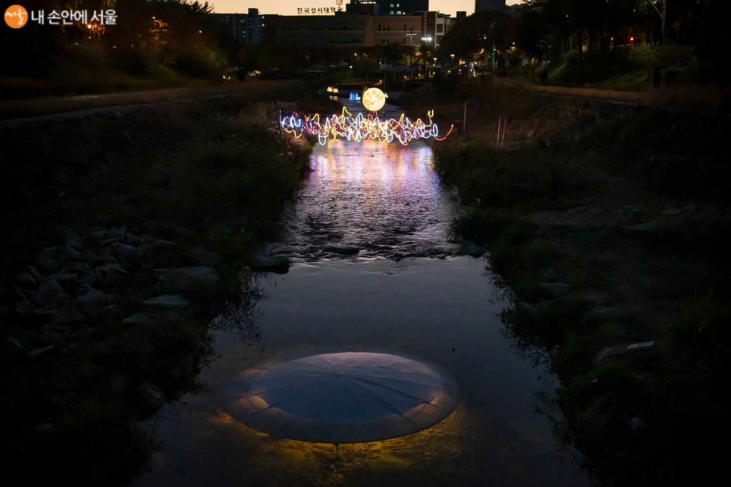 '달그림자(보라리)' 당현천 위로 내려앉은 달그림자 ⓒ안성봉