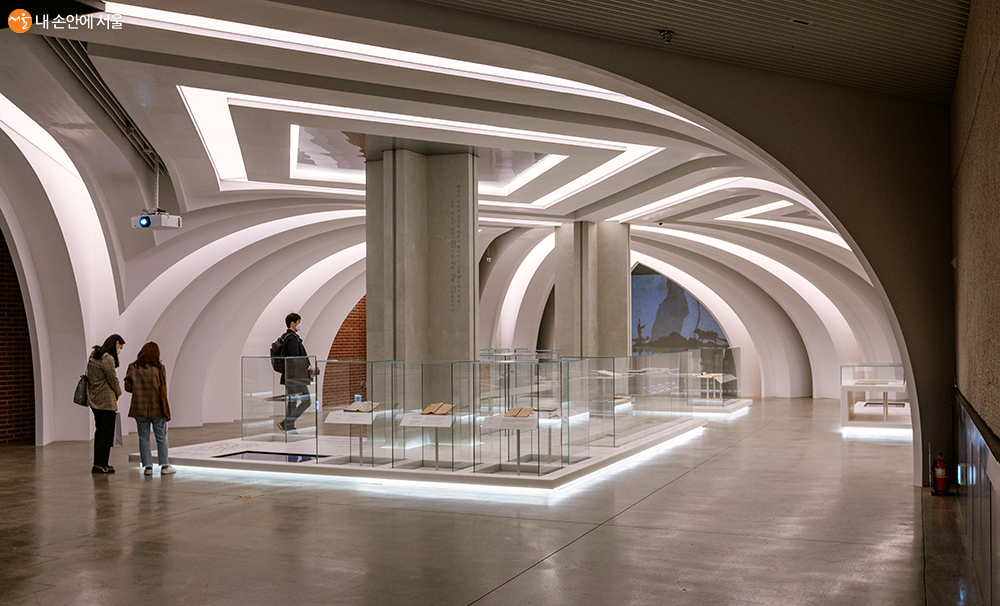 독특한 구조와 조명으로 차분함을 안겨주는 공간인 ‘상설전시실 1, 2관’은 지하 3층에 있다 ⓒ양인억