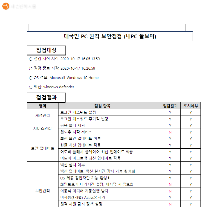 점검 결과를 리포트로 보여준다. ⓒ한국인터넷진흥원