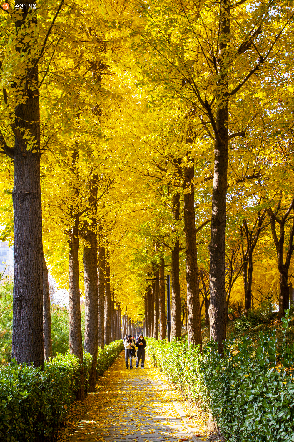 은행나무를 따라 가을을 만끽하고 있는 시민들 ⓒ조은혜