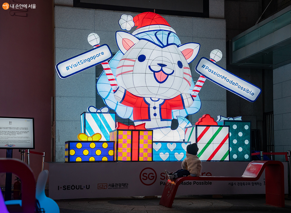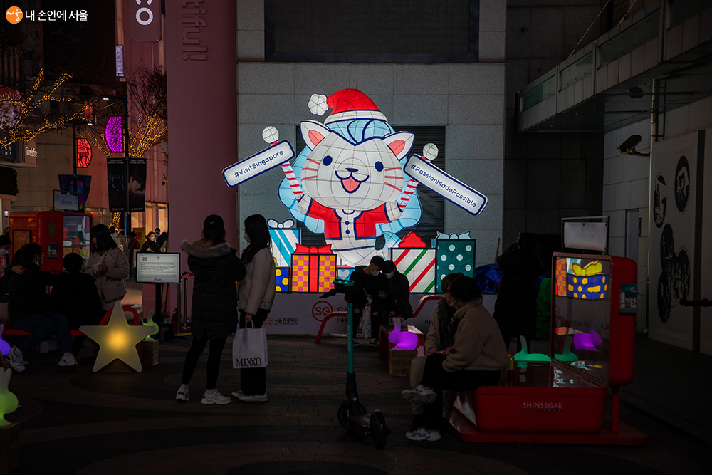 싱가포르관광청의 마스코트인 멀리(Merli)도 명동의 희망빛축제에 동참했다 ⓒ양인억